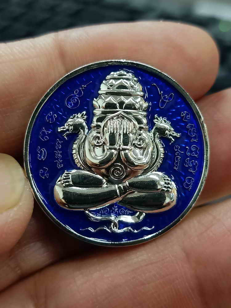 เหรียญบรมครูตาขุนโหร รุ่นพ่อให้รวย (หมึก ท่าพระจันทร์ จัดสร้าง) เนื้อเงิน ลงยาสีน้ำเงิน no.363 มีกล่อง |