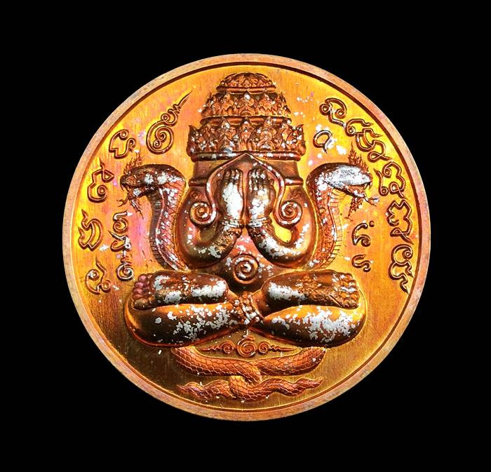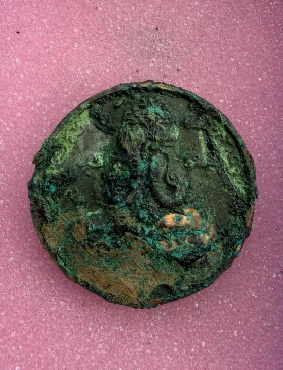 เหรียญพระปิดตาพังพระกาฬ รุ่น "ลูกพ่อต้องรวย" เนื้อทองแดงผิวไฟ สอดไส้คันฉ่อง หมายเลข ๑๓๕๔ พร้อมกล่องเดิม สุดยอดมหาพิธีเทวาภิเษก ๔ วาระ จัดสร้างโดย หมึก ท่าพระจันทร์ |