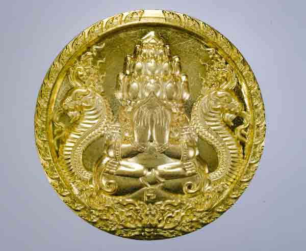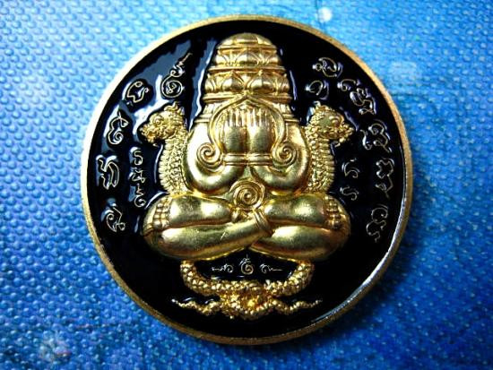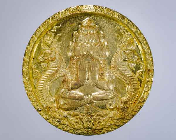 เหรียญพระปิดตาพังพระกาฬ รุ่น "ลูกพ่อต้องรวย" เนื้อชนวน โค๊ตพิเศษ แยกชุดทองคำ พิมพ์เล็ก หมายเลข ๕๑๘๔ พร้อมกล่องเดิม สุดยอดมหาพิธีเทวาภิเษก ๔ วาระ จัดสร้างโดย หมึก ท่าพระจันทร์ |