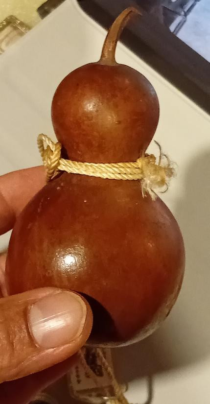 น้ำเต้าบรรจุมวลสารวิเศษพร้อมรูปถ่ายเจ้าแม่กวนอิมหลังเทพนาจาภาพเป็นปรอทเลี่ยมเก่าครับ |