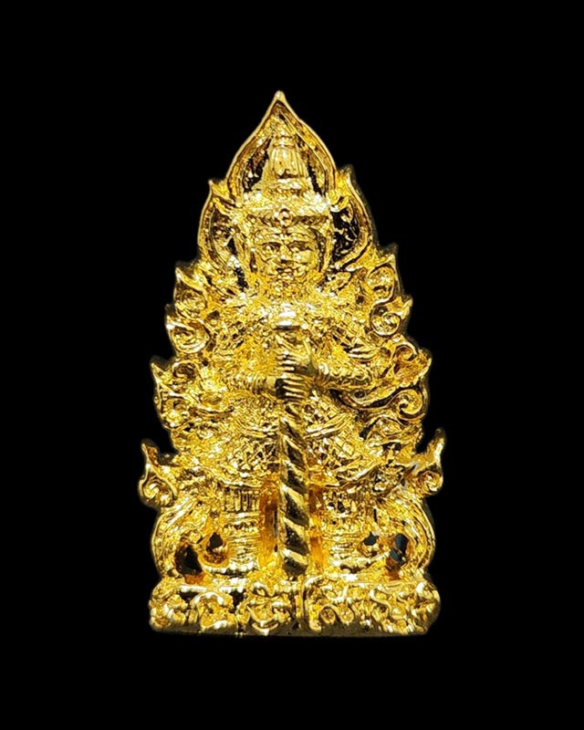 เคาะเดียวแดง 100 พญาครุฑมังรายศาสตร์ เศรษฐีอนันตทรัพย์ พระอาจารย์วิรุต วัดสันมะเหม้า จ.เชียงราย เนื้อสัมฤทธิ์ชุบทองขัดเงาบางส่วน พิมพ์เล็ก สูง 3 ซ.ม. กล่องเดิม