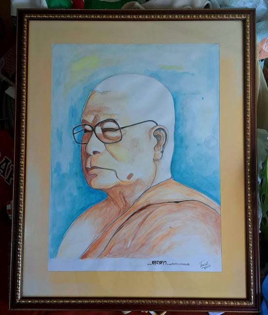 ภาพวาดสีน้ำ ท่านพุทธทาสภิกขุ ใสในกรอบรูปคลาสสิค ขนาด 25นิ้ว×21นิ้ว