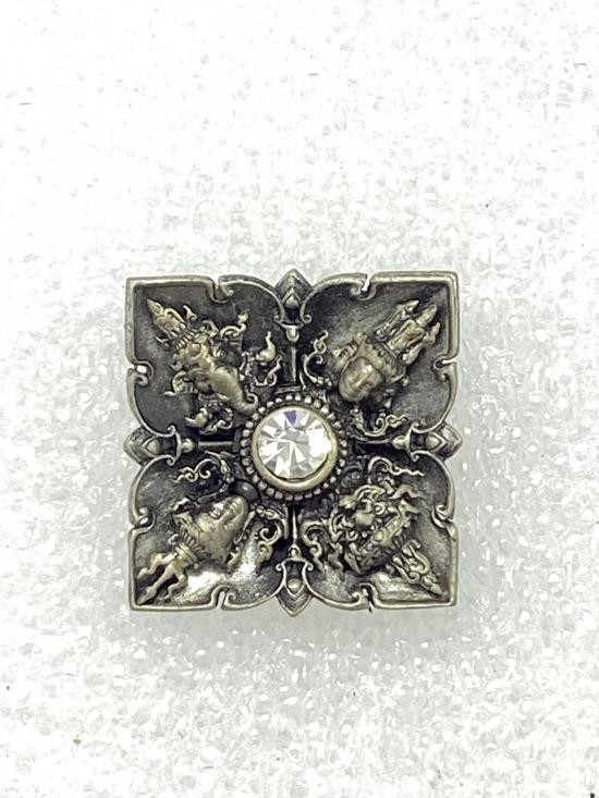 เคาะเดียวแดง 100 มหาเทพเทวศิลป์ จตุรเทพอริยทรัพย์ พระอาจารย์อรรณพ(อาจารย์เล็ก) วัดถ้ำเขาน้อย จ.เพชรบุรี เนื้อสัมฤทธิ์ชุบซาตินเงิน พิมพ์เล็ก ขนาด 1.5 ซ.ม. กล่องเดิม