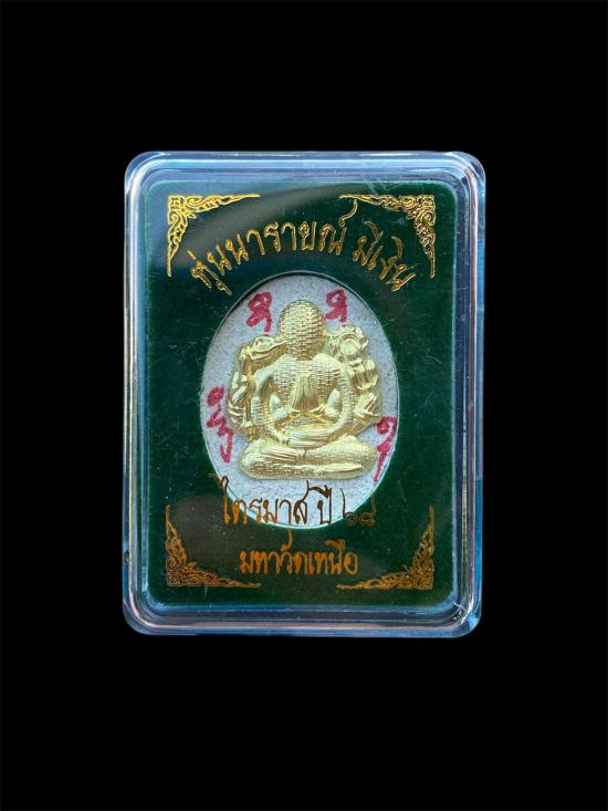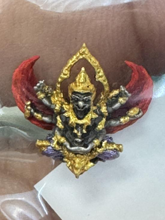 พญาครุฑ หลวงปู่จื่อ วัดเขาตาเงาะ ชัยภูมิ เนื้อไวท์บรอนซซาตินเครื่องทรงทองปีกเพ้นท์แดงส้ม หมายเลข 7 สร้างจำนวน 39 องค์ ซีนเดิมกล่องเดิม |