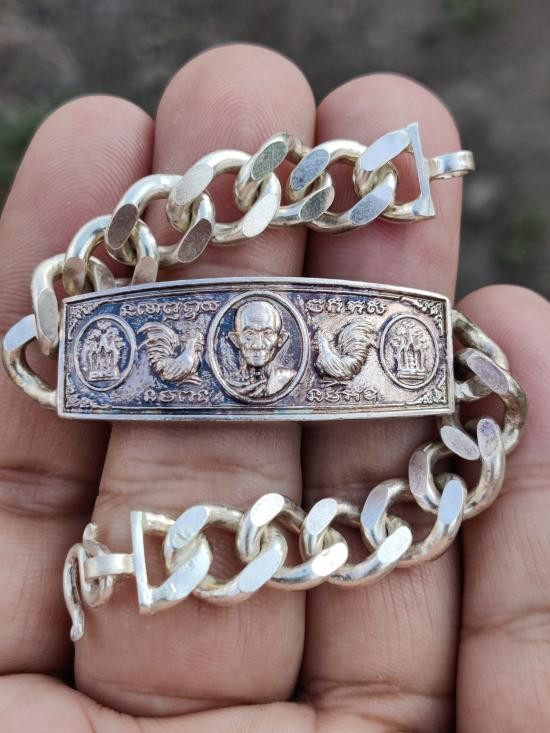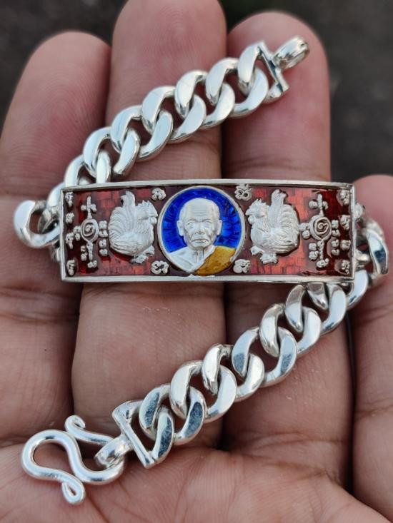 หลวงปู่สรวง วรสุทฺโธ วัดถ้ำพรหมสวัสดิ์ จ.ลพบุรี เลสข้อมือ รุ่นเงินทองล้นเหลือ ปี 2558 เนื้อเงินลงยา (เลข1 ) ขนาด2 บาท ทันหลวงพ่อเสก |