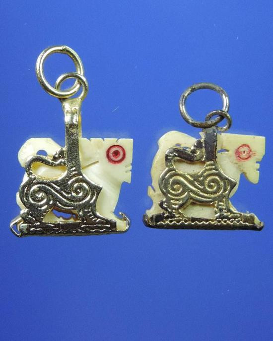 สิงห์สองขวัญ หลวงพ่อมุ่ย วัดดอนไร่ พิมพ์ศิลป์C ปี2500-2517 จ.สุพรรณบุรี(ขนาด0.8ซม.) + บัตรG-pra สภาพเดิมค่ะ |