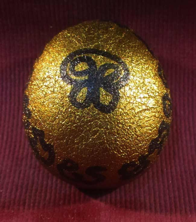 เข็มกลัดหลวงพ่อโต วัดสระเกศราชวรมหาวิหาร หลังตราพระเกี้ยว พ.ศ 2543 25 ปี มูลนิธินิสิตเก่าจุฬาลงกรณ์มหาวิทยาลัย |