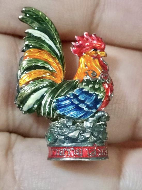 ไก่ หลวงพ่อรวย วัดตะโก จ.อยุธยา รุ่น รวย รวย เฮง เฮง เนื้อเงินลงยา ตอกโค๊ต ตอกหมายเลข 849 |