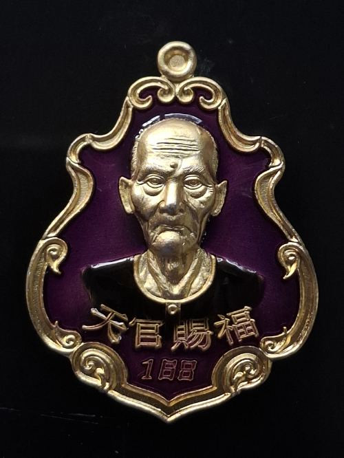 เหรียญที่ระฤกชาตกาล 120 ปี เซียนแปะโรงสี (โง้วกิมโคย) เนื้อนวโลหะ สร้างจำนวน ๙๙๙ เหรียญ เลข 122 ตอกโค๊ดภาษาจีน |
