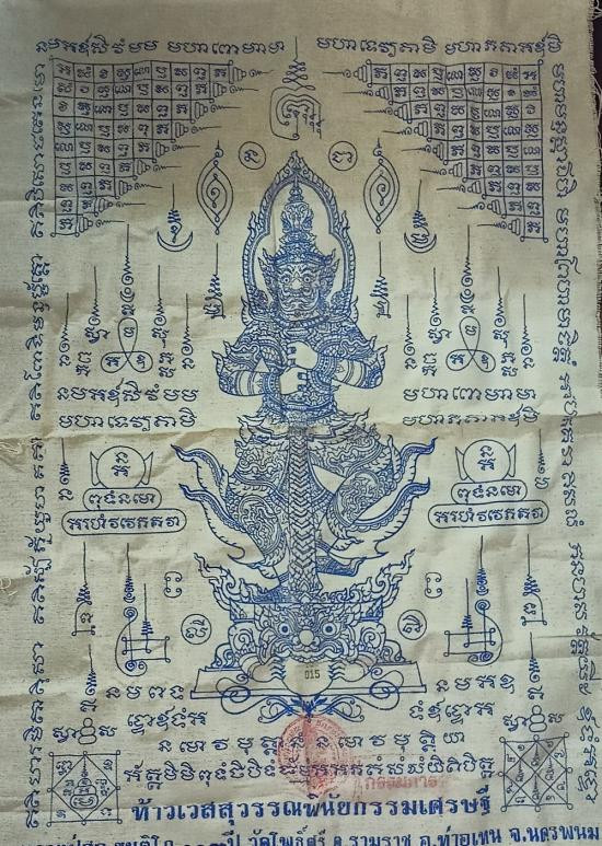 ผ้ายันต์ ท้าวเวสสุววรณ ขนาด 17 x 24 นิ้ว รุ่น "พินัยกรรมเศรษฐี" ปลุกเสกโดย หลวงปู่สอ ขันติโก วัดโพธิ์ศรี ปี61 เบอร์ 15 ครับ (ผ้ายันต์ผืนใหญ่ครับ) |