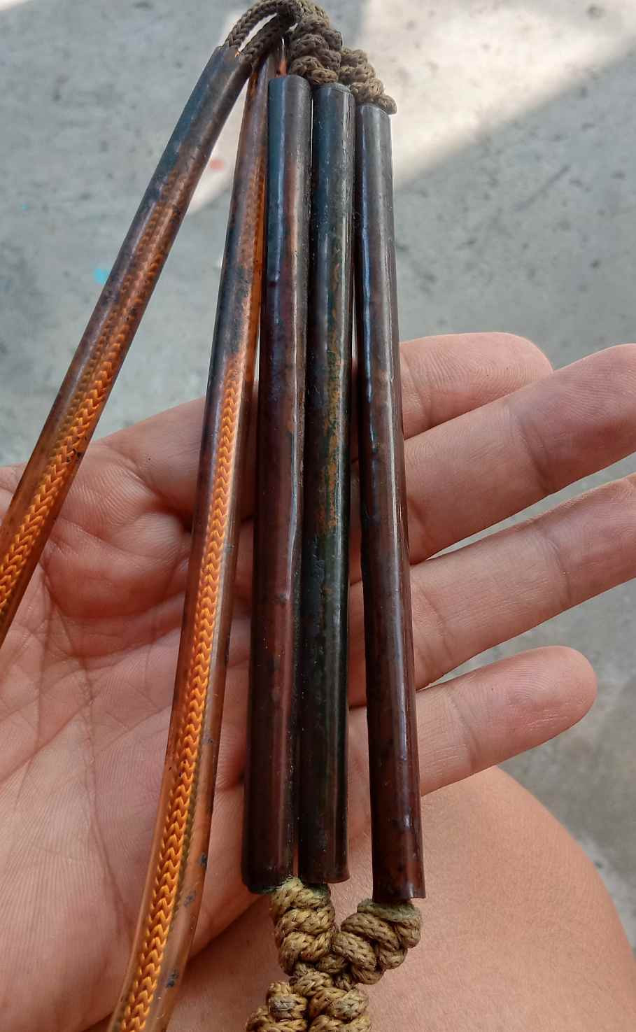 ตะกรุด เนื้อทองแดง2 ฝาตร1 ดอก ดอกเก่าไม่ทราบเกจิ ดอกยาว3 นิ้ว ดอกมีฝาบาตรยาว1.7นิ้ว เก่าไม่ทราบเกจิ |