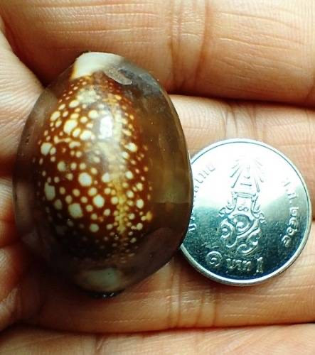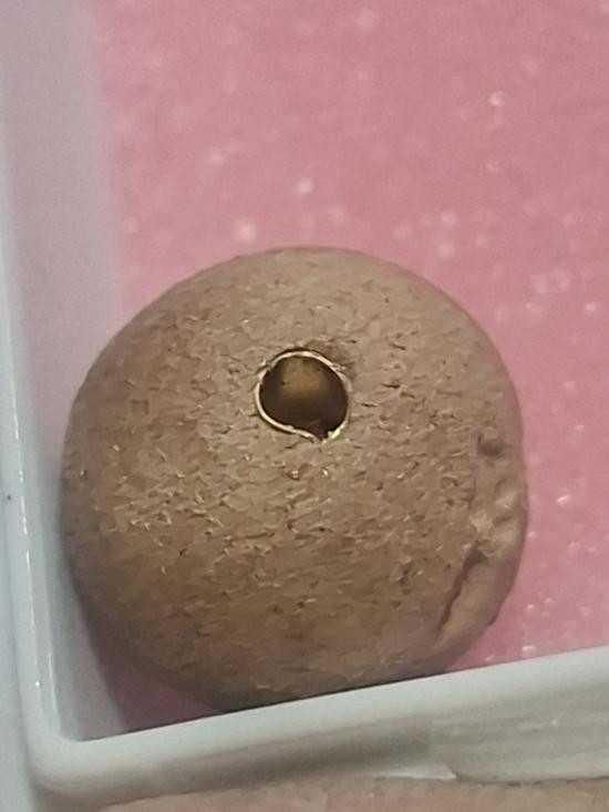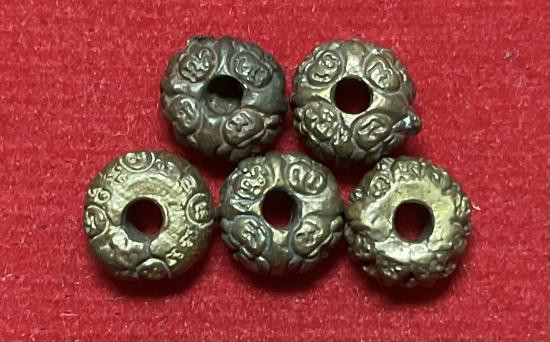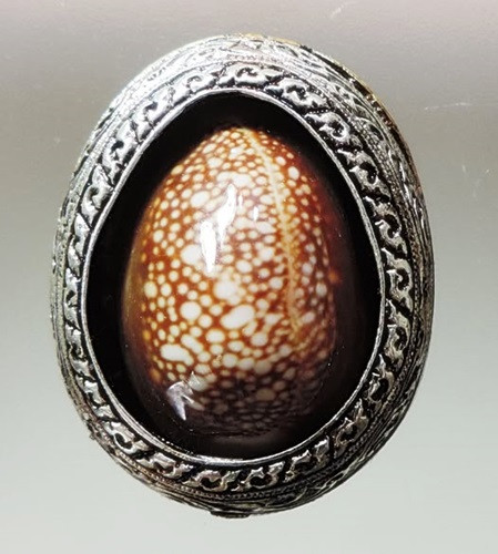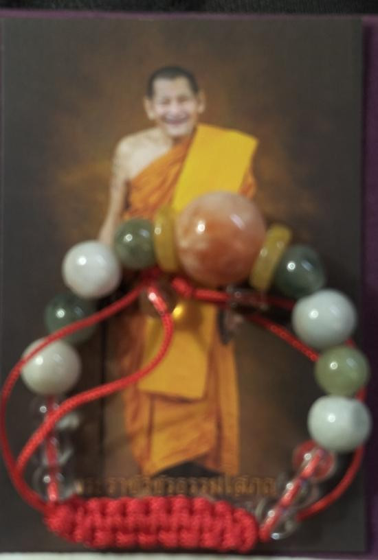 เบี้ยแก้ หุ้มจีวร ถักเชือก หลวงปู่ศิลา วัดโพธิ์ศรีสะอาด มีแผ่นเลขกำกับ ฝังตะกรุดทองเหลือง พร้อมใบคาถา ปี2567 |