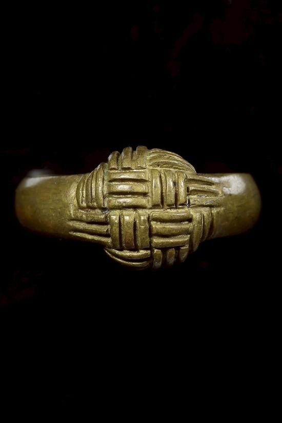 แหวนปลอกมีด *** เนื้อนวะโลหะ**ท่านขุนพันธ์ฯเป็นเจ้าพิธีจัดสร้าง ตอกโค๊ด ด้านในเป็นปิดตาพังพกาฬ |