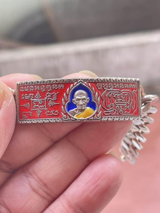 หลวงพ่อรวย วัดตะโก จ.อยุธยา เลสข้อมือ รุ่น รวยทันใจ ปี2558เนื้อเงินลงยา ขนาด4บาท |