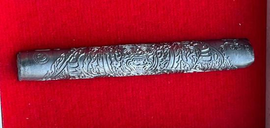 มีดหมอเก่าตอกลายนาคเกี้ยวยาว 9.5 นิ้วไม่ทราบที่สวยดีเชิญครับ. |