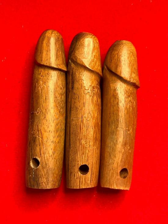 ปลัดขิกไม้พยุงแกะอุดกริ่ง ค้าขายร่ำรวยครับ มีจารรอบอัน รุ่นไตรมาศ44 หลวงพ่อเปิ่น วัดบางพระ พ.ศ.2544 |