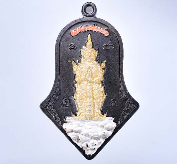 พระพิฆเนศ พระอาจารย์อึ่ง วัดเซิงหวาย จ.กรุงเทพ หลังฝั่งเหรียญหลวงพ่อผลฯ เนื้อผงมวลสารเพ้นท์สี จารยันต์ พร้อมเลี่ยม |