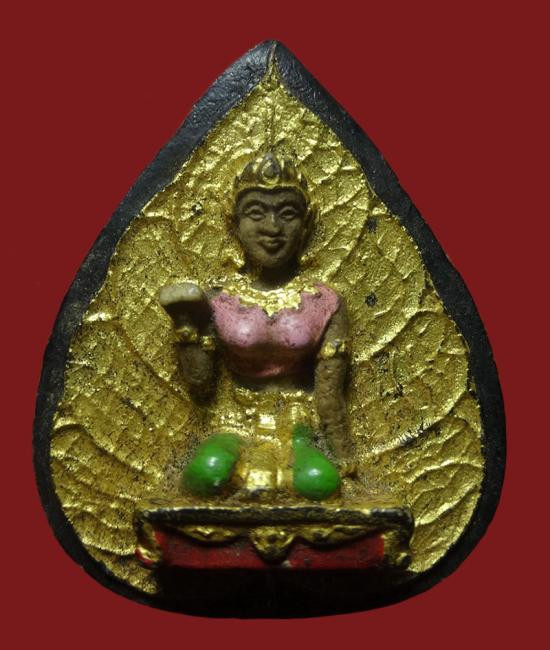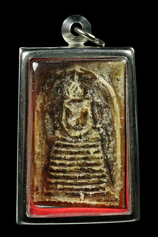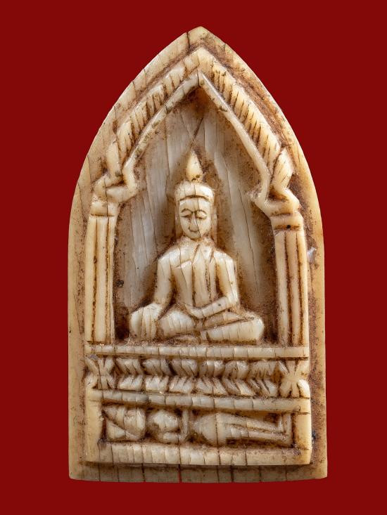 พระพุทธหลังนางกวัก(ปีจอ) เนื้องาแกะ มีจารที่ขอบฐาน |