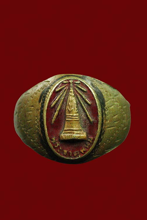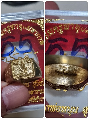 แหวนพระไตรสรณคมน์อันตรายาปิ ขนาดแหวนเบอร์ 55 หลวงพ่อหนุน วัดพุทธโมกข์ สกลนคร |