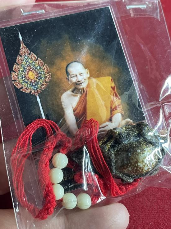 เบี้ยแก้ หลวงปู่ศิลา พร้อมสายข้อมือแดง และ ใบฝอย ปี 2566 |