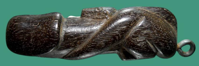 ราหูกะลาตาเดียวเเกะทั้งใบ ปี 47 หลวงปู่ทิม วัดพระขาว มีจารหมึกทอง และจารอักขระที่ผิวกะลา สวย งาน handmade หายากมาก น่าใช้ เข้มขลังมากครับ |