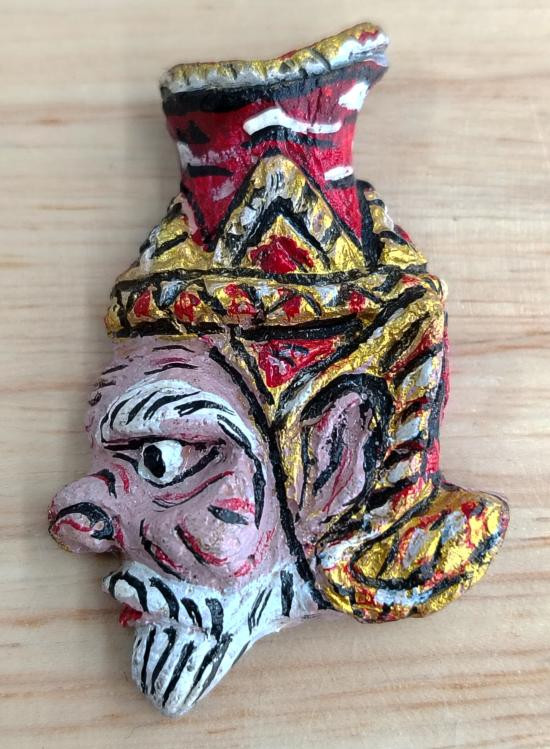 กุมารทองกวัก ถือถุงเงินถุงทอง แกะมือเก่า ไม่ทราบเนื้อ น่าจะเป็น กระดูกหรือกราม ไม่ทราบที่