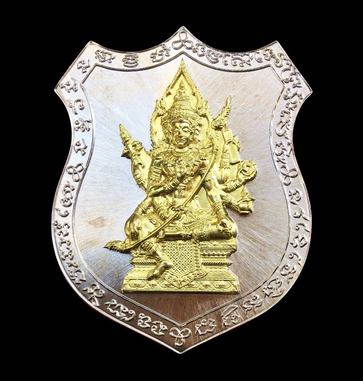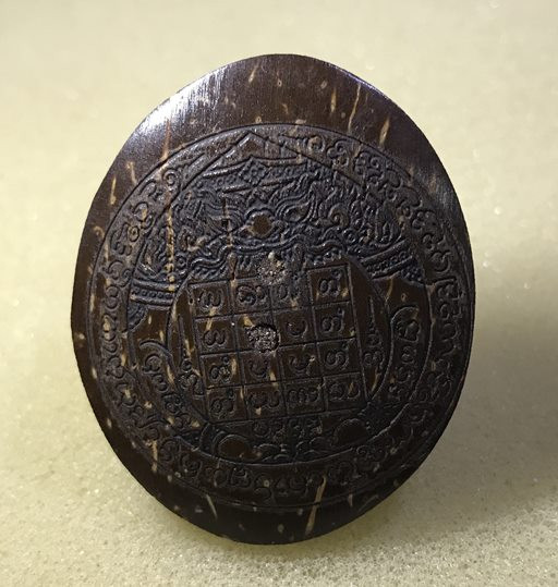 เคาะเดียว เหรียญพระพิราพ เทพแห่งบรมครู หลวงพ่อปุ่น วัดป่าบ้านสังข์ จ.ร้อยเอ็ด เนื้อฝาบาตร จารมือ พร้อมเลี่ยม |