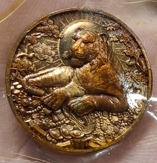 เหรียญเสือนอนกิน รุ่นรวยทรัพย์ ปี 68 พระอาจารย์ประสูติ วัดในเตา เนื้อทองแดง แช่น้ำมันเสือ |