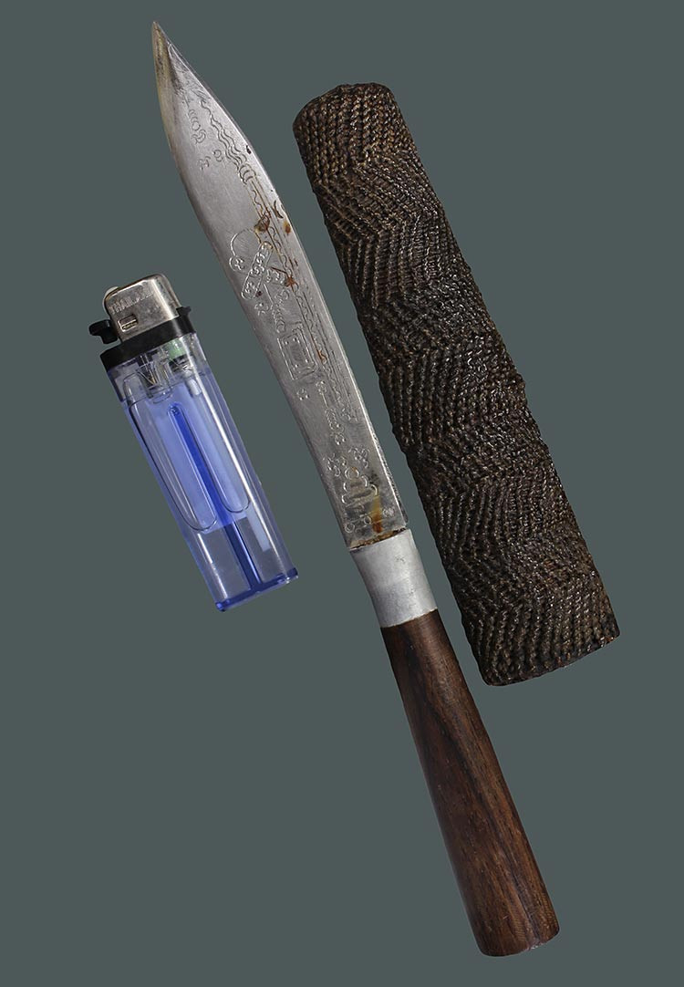 วัดใจ**เครื่องราง มีดหมอ ด้ามไม้+ฝักถักเชือกลงรัก ยาว 9.5นิ้ว.....สภาพสมบูรณ์ครับ |