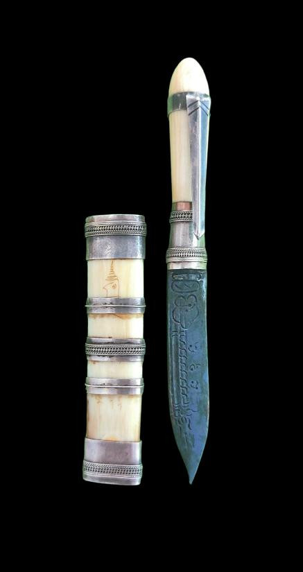 วัดใจ** เครื่องราง พระขรรค์เนื้อเขาควายเผือก *(มีรอยจาร)*เก่า ยาว 5.นิ้ว....เดิมๆครับ |