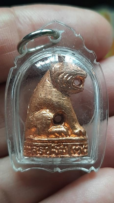 สิงห์งาแกะ ปากเจาะหัวมังกร งานสิ่วแกะมือ ขนาด 2 ซม.หลวงพ่อกัน วัดเขาแก้ว อยู่ในตลับสีผึ้ง สวยสมบูรณ์ |
