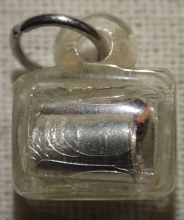 ตะกรุดลูกอม หลวงพ่อหยอด วัดแก้วเจริญ เนื้อเงิน ตอกโค๊ตภาษาจีน |