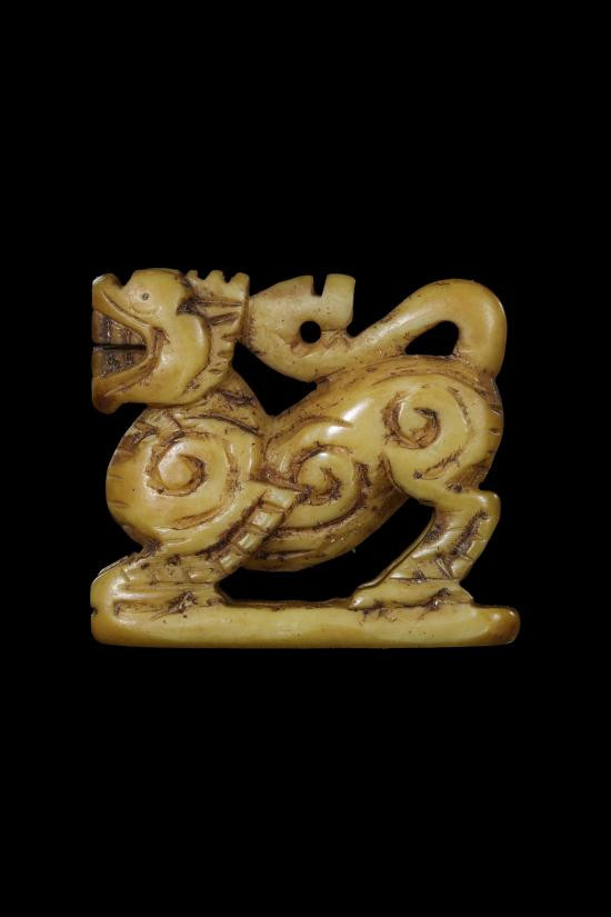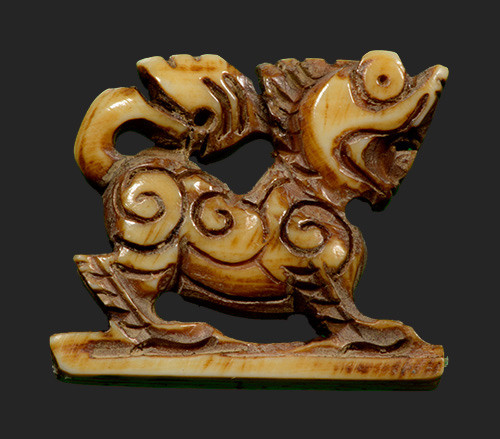 เขี้ยวหมูป่าตันแกะรูปเสือ พอกผงถักลวดเก่า |