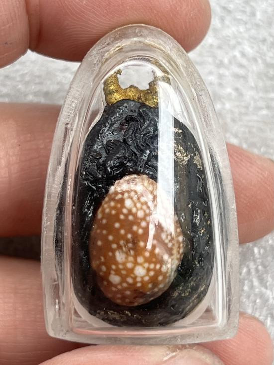 ลูกอมครั่งมนต์พระกาฬ หลวงพ่อวิชัย วัดหัวเด่น (เนื้อครั่งเดียวกับที่ติดหลังเหรียญมนต์พระกาฬ) เลขสวย "28" จารมือหมึกทอง |
