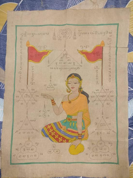 ผ้ายันต์แม่นางกวัก มนต์เสน่ห์แห่งเครื่องราง กวักเงินกวักทอง โชคลาภ งานเขียนมือ ล้วนๆ ศิลปยุคใหม่ ขนาด 44*57 ซม. ** |