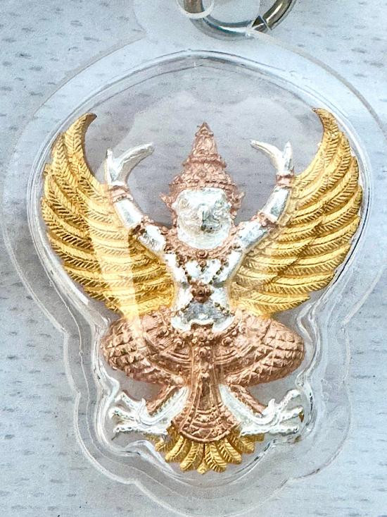 พญาครุฑ สามกษัตริย์ สวยๆ วัดอาวุธวิกสิตาราม คุณแม่บุญเรือน พร้อมเลี่ยมและมีเชือกพร้อมห้อยคอ รุ่นคลังโภคทรัพย์ อธิษฐานจิตโดย หลวงปู่ศิลา สิริจันโท |