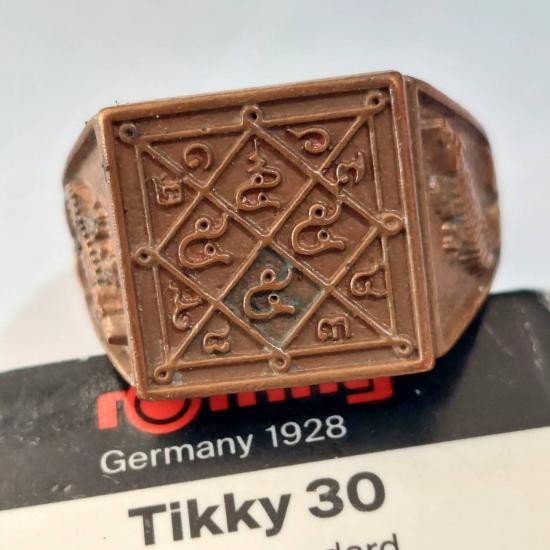 แหวนยันต์ตรีนิสิงเห ใต้ท้องแหวนหมูทองแดง วัดเขากะโหลก ปราณบุรี เนื้อทองแดง มีประสบการณ์ ขนาด 2.0 ซม. |