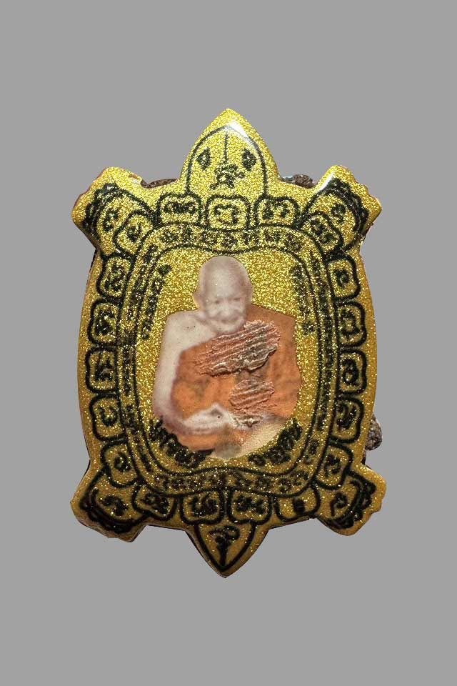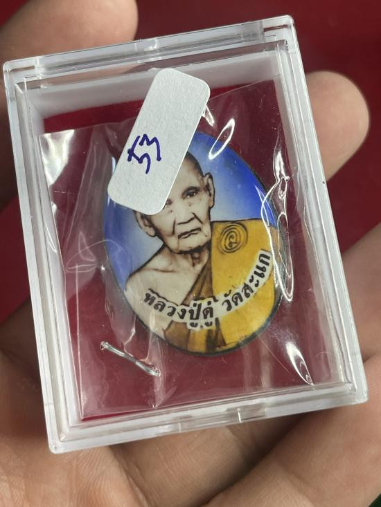 หลวงปู่ดู่ วัดสะแก ฉากน้ำเงินทะเล ซีเปีย พิมพ์รูปไข่ หลังยันต์ เนื้อตะกั่ว ปี 53 |