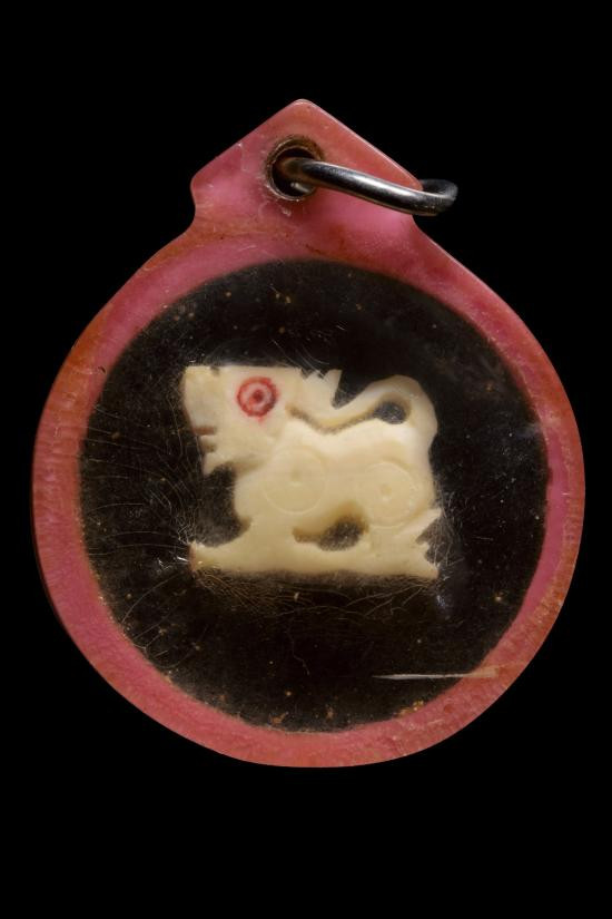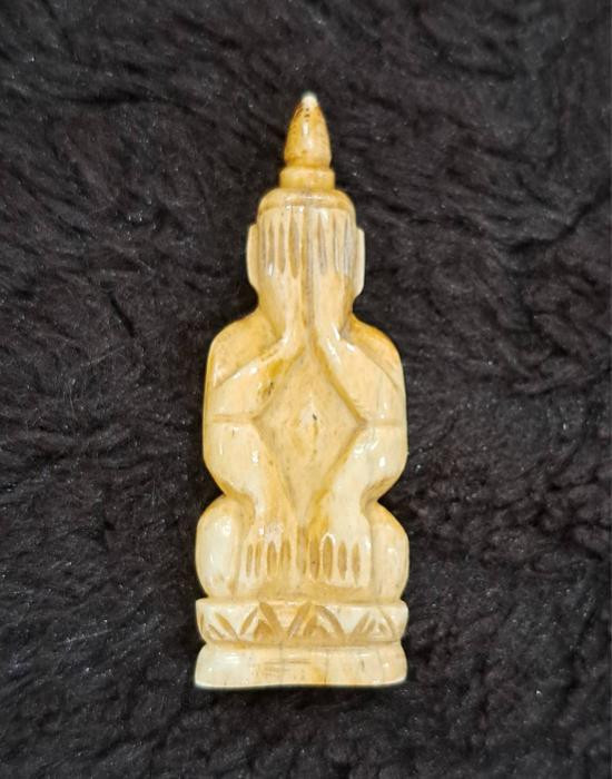 สิงห์งาแกะพิมพ์จิ๋ว เลี่ยมเดิม หลวงพ่อหอม วัดชานหมาก |