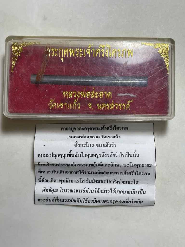 200.- ems ตะกรุด พระเจ้าตรึงไตรภพ เนื้อตะกั่ว ยาว 3 นิ้ว หลวงพ่อสะอาด วัดเขาแก้ว นครสวรรค์ ศิษย์เอกหลวงพ่อกัน สายหลวงพ่อเดิม วัดหนองโพ ตะกรุดนี้ เป็นยันต์เดียวกับที่หลวงพ่อเดิม ใช้ลงมีดหมอ มีโค๊ด/เลข |