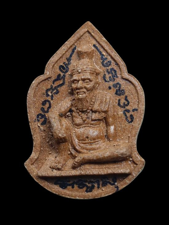 300... เศียรพ่อแก่ฤาษี พระอาจารย์อึ่ง วัดเซิงหวาย จ.กรุงเทพ หลังฝั่งเหรียญหลวงพ่อผลฯ เนื้อผงมวลสารเพ้นท์สี จารยัน พร้อมเลี่ยม |