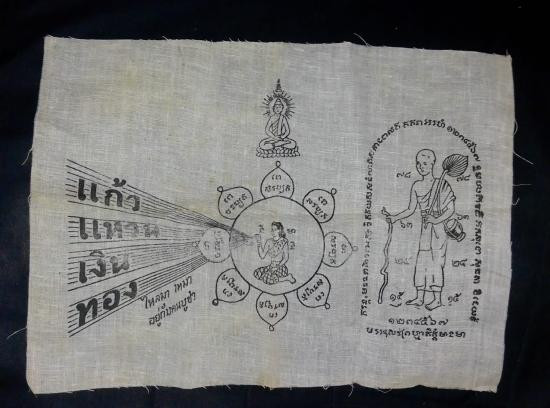 ผ้ายันต์ ผ้ายันต์พัดโบก ผืนเล็ก หลวงปู่คร่ำ วัดวังหว้า จ.ระยอง รุ่นสรงน้ำเสาร์ 5 ปี 2537 |
