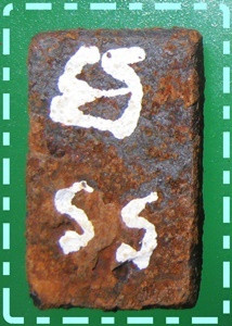 ผาลไถ ลพ.ชื่น วัดในปราบ เคียนซา สุราษฎร์ฯ ขนาด๑.๕x๒.๕ซม. จาร๒หน้า สวยๆ |