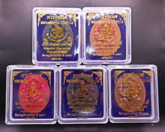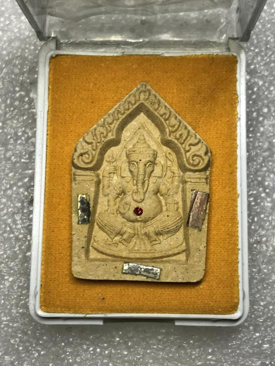 พระพิฆเนศ เนื้อผง ฝังพลอย ตะกรุด 3 กษัตริย์ รุ่น โชคดีมีสุข หลวงปู่หงษ์ วัดเพชรบุรี จ.สุรินทร์ ปี2547 พร้อมกล่องเดิม |