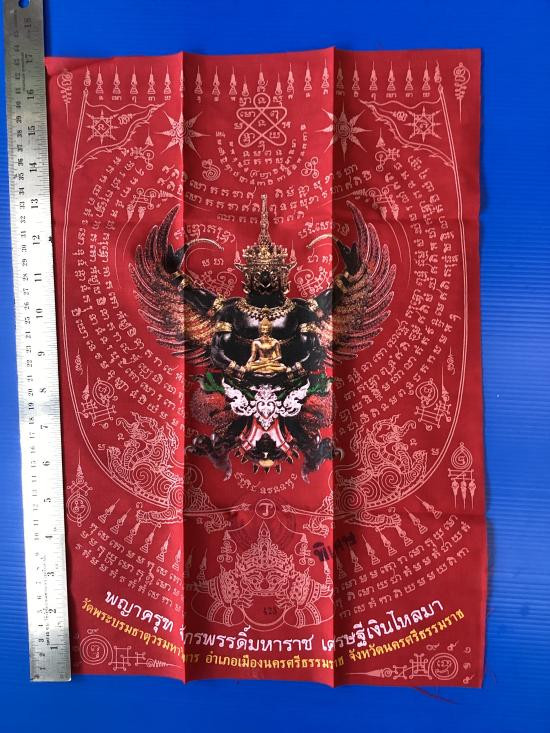 เคาะเดียวแดง 100 ผ้ายันต์ พญาครุฑ รุ่น เศรษฐีเงินไหลมา วัดพระศรีมหาธาตุวรมหาวิหาร จ.นครศรีธรรมราช สีแดง ขนาด A3 ขนาด 11.5 นิ้ว x 16.5 นิ้ว |