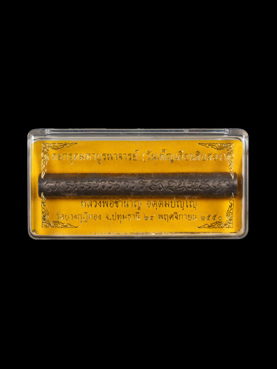 ตะกรุดมหาบูรพาจารย์ (วันเพ็ญเดือนสิบสอง) หลวงพ่อชำนาญ วัดบางกุฎีทอง จ.ปทุมธานี ปี ๒๕๕๐ มาพร้อมกล่องเดิมๆ จากวัด ขนาด 4 นิ้ว |