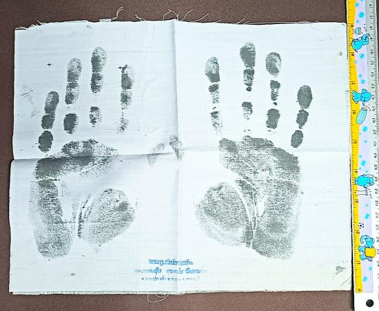 ผ้ายันต์ รอยมือ หลวงพ่ออุ้น วัดตาลกง |