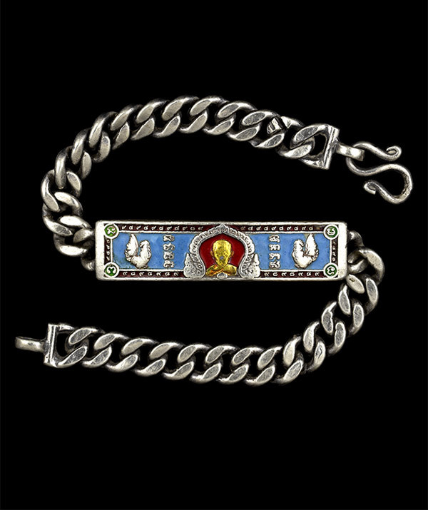 กำไลจินดามณีมหาโสฬส หลวงพ่อชำนาญ เนื้อเงิน จารเดิม |