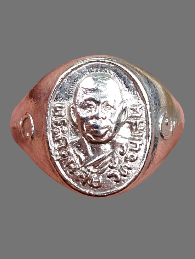 แหวน บ่วงนาคบาศ มนตรานาคราชดำหมื่นหิน หลวงปู่มหาศิลา หลวงปู่ศิลา สิริจันโท ธรรมอุทยาน วัดพระธาตุหมื่นหิน จ.กาฬสินธุ์ เนื้อนวะโลหะ เลข ๓๑๒ มีกล่องเดิม |