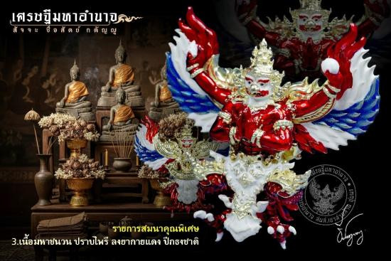 เคาะเดียวแดง 200 พญาครุฑทรงฤทธิ์แห่งอาณาจักรทะเลใต้ เศรษฐีมหาอำนาจ หลวงพ่ออำนาจ อาทิตฺตวณฺโณ สำนักสงฆ์เขาสามล้าน จ.ชุมพร เนื้อมหาชนวน 3 กษัตริย์ สูง 3.5 ซ.ม. ซีลเดิม ยังไม่ได้แกะ |